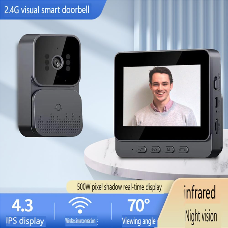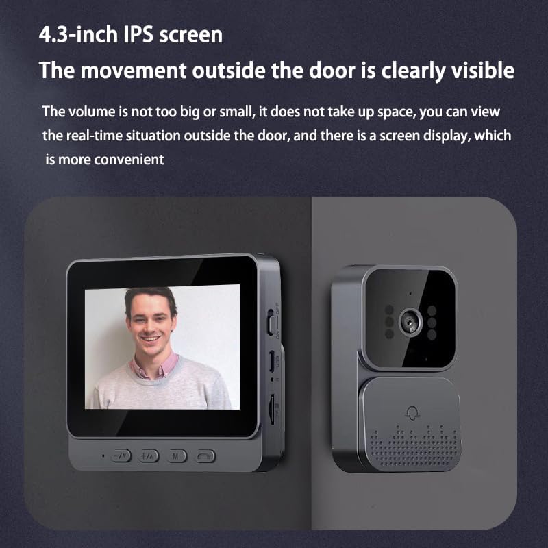 HD camera and night vision:Use 500W pixel video to display the status outside the door in real time, 24-hour security protection, 4.3-inch IPS screen, no need to open the door or traditional cat eyes, you can clearly see the environment outside the door, intelligent optimization of infrared night vision mode, even in the dark night, you can see clearly.